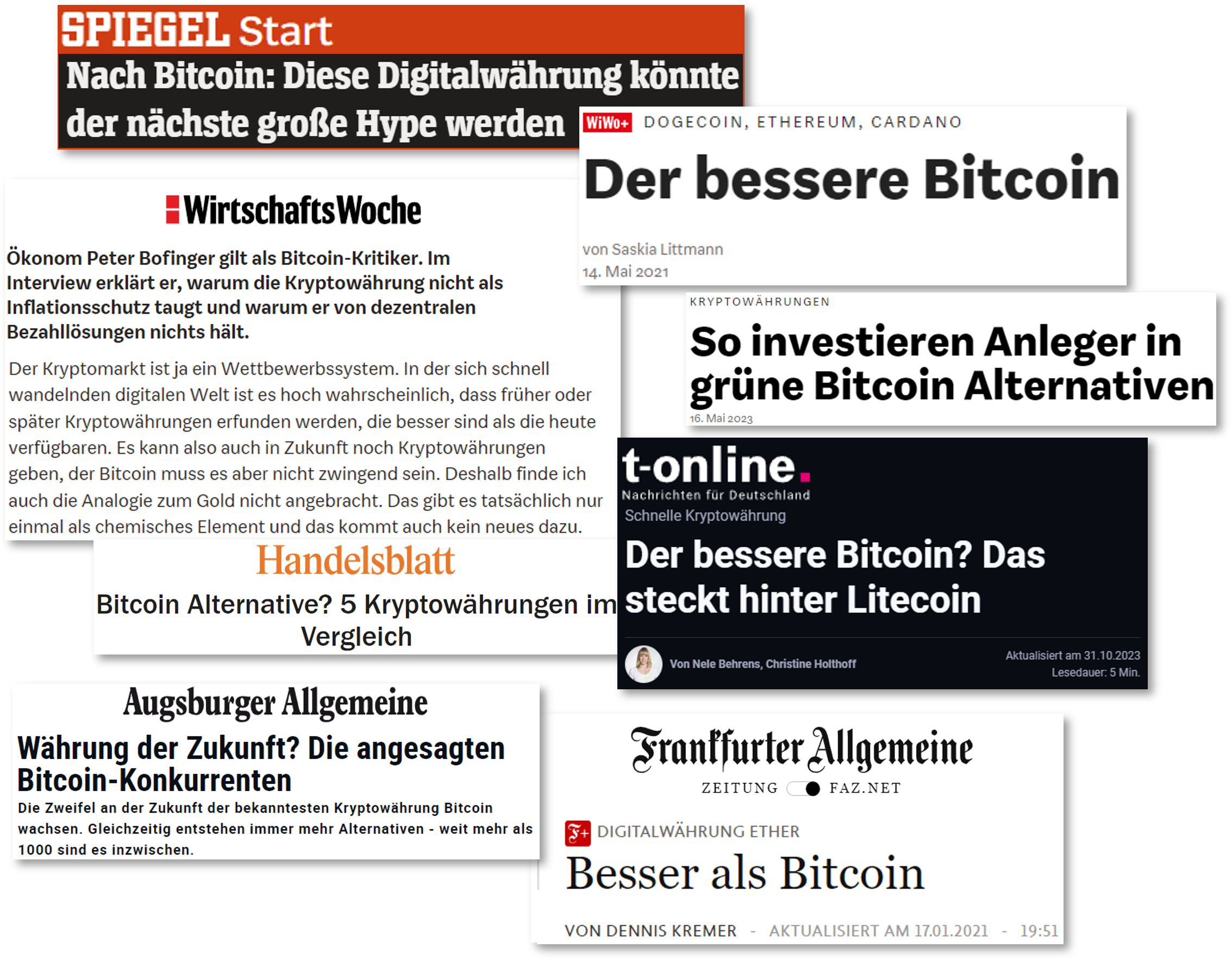 Bitcoin gilt gemeinhin als erste Kryptowährung, infolgedessen mittlerweile über 20.000 weitere Kryptowährungen entwickelt wurden. Hierbei gibt es sowohl Projekte, welche unmittelbar auf den Regeln des Bitcoin-Protokolls aufsetzen und nur marginale Änderungen vornehmen („Forks“) – wie etwa Bitcoin Cash oder Bitcoin Gold – als auch Projekte, welche Potenziale und Anwendungen anpreisen, welche Bitcoin nicht anbieten kann (können soll), wie etwa Ethereum, Cardano oder Solana. Entsprechend ist die Frage nachvollziehbar, ob es mittlerweile nicht bessere Lösungen als Bitcoin gibt – neuer, moderner, leistungsfähiger, anpassungsfähiger? In der öffentlichen Berichterstattung wird diese Thematik häufig diskutiert, indem bestimmte Merkmale und Eigenschaften alternativer Kryptowährungen angepriesen werden – ohne hierbei jedoch die Alleinstellungsmerkmale von Bitcoin angemessen zu bewerten und die entsprechenden Risiken und Nachteile der alternativen Krypto-Projekte ins Verhältnis zu setzen.